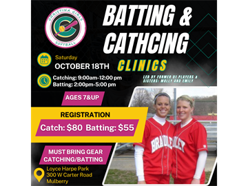 Hi CGS Families, We’re hosting two high-impact clinics on Saturday, October 18 at Loyce Harpe Park (Mulberry, FL)—led by the dynamic duo of former D1 softball sisters, Coach Molly and Coach Emily. Perfect timing to sharpen skills mid-season! Clinic Schedule & Pricing Catching Clinic — 9:00 AM–12:00 PM | $80 Hitting Clinic — 2:00 PM–5:00 PM | $55 Bundle Both Clinics — $125 (best value) Why attend? College-level instruction tailored for youth players Focus on mechanics, confidence, and game-ready reps Small-group environment for maximum reps and feedback 📍 Location: Loyce Harpe Park, Mulberry, FL 🔗 Register now: https://www.christinagirlssoftball.org/Default.aspx?tabid=1159548 Spots are limited—secure your catcher’s gear (for the catching clinic), grab your bat/helmet, and reserve your spot today! See you at the park, Christina Girls Softball [email protected] www.christinagirlssoftball.org